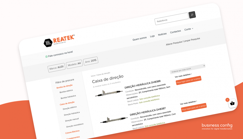 A Business Config desenvolveu uma solução para a Reatek, uma empresa que presta serviços na indústria automóvel. Neste caso, a gestão de stocks e inventário já estava a ser feita no Sage, e a loja online foi desenvolvida no WooCommerce (Ecommerce para WordPress). O que fizemos foi criar uma ponte entre os dois, de forma a disponibilizar um catálogo online para os seus fornecedores.
